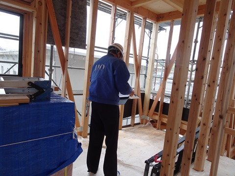 上棟後のいつもの作業、まずは金物取付・検査を行い